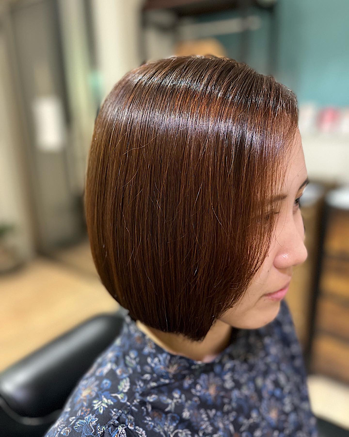 静岡市葵区の理容店"Barber&spa Cresta"です。今回はカラーの紹介です。フェードの投稿が続きましたが😅今回は違う内容です😊ボブスタイルで赤系のカラー。マグネットカラーなのでツヤツヤ✨仕上げにバーデンス・リペアエッセンスを使用しているので手触りもバツグン!フェードとは違う細かい仕事してます😁
