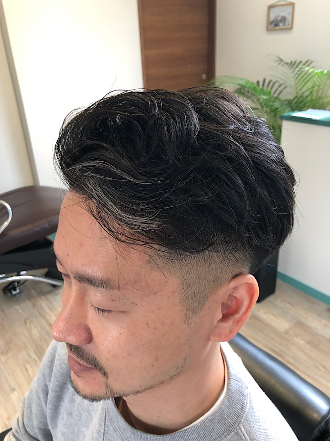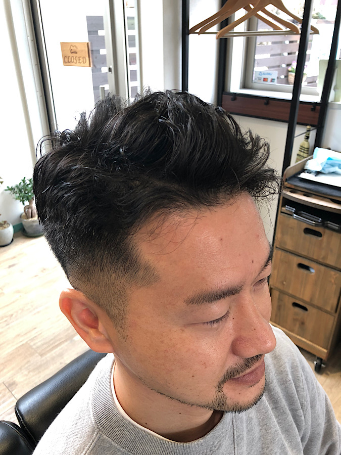静岡市葵区の床屋"Barber&spa Cresta"です。今回はアイロンパーマでこんな自然な感じに!の紹介です😊クセ毛風のパーマロッドのパーマしにようと思いましたがライトサイドがかなり短いのでアイロンパーマにしました😊アイロンパーマと聞くとパンチパーマを想像される方がいらっしゃいますが😅こんな感じも出来るんです!パーマは濡れた髪だとカールが出て乾かすと少し伸びる感じになりますが、アイロンパーマだと濡れた時はカールが出なくてドライヤーで乾かすとカールが出てきます。使い分けるといろんなスタイル楽しめます😊フェード部分は0.3mmスタイリング剤はステージワークストゥルーエフェクターシャインです。